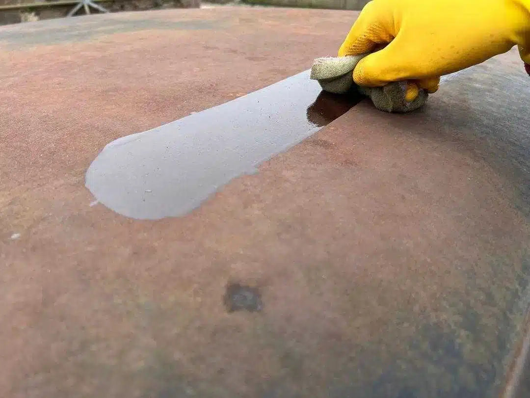 On brand new metal surfaces, use Owatrol’s AP 60 instead. If you are looking for a high gloss rusted finish you can also overcoat the surface with Deks Olje D2 high gloss clear oil.