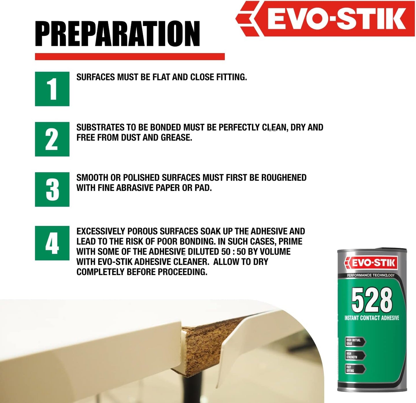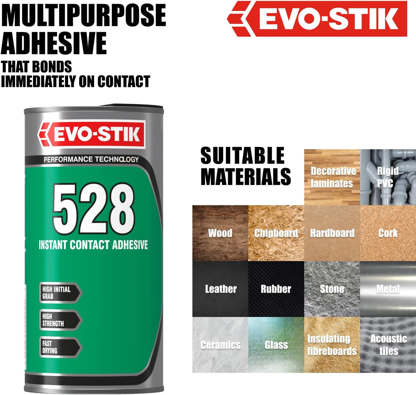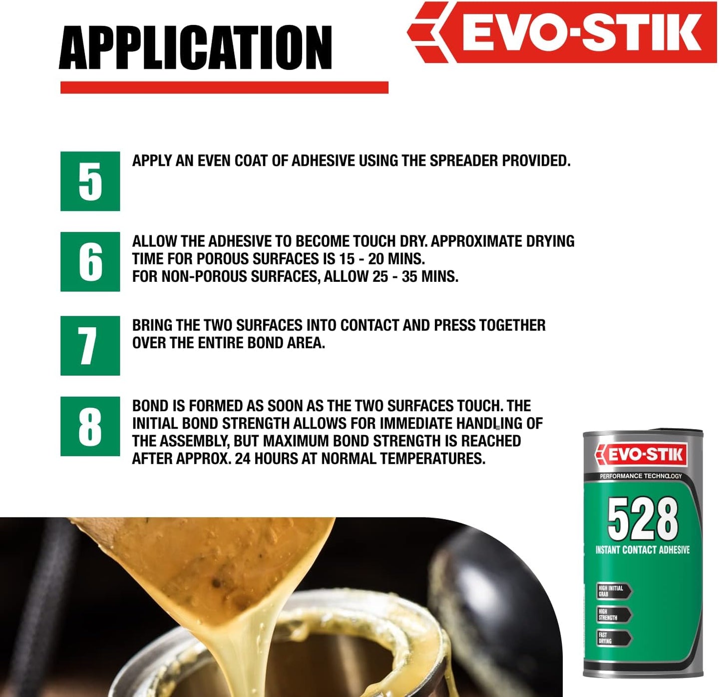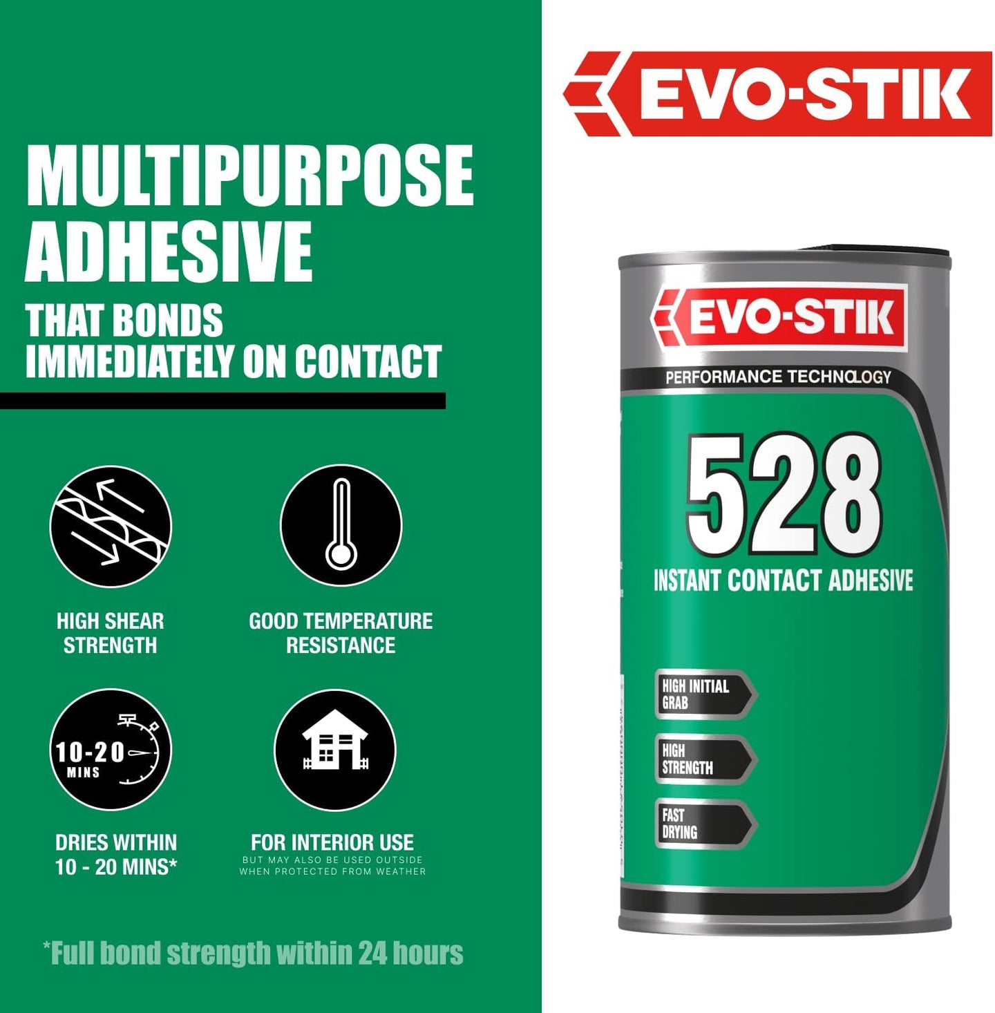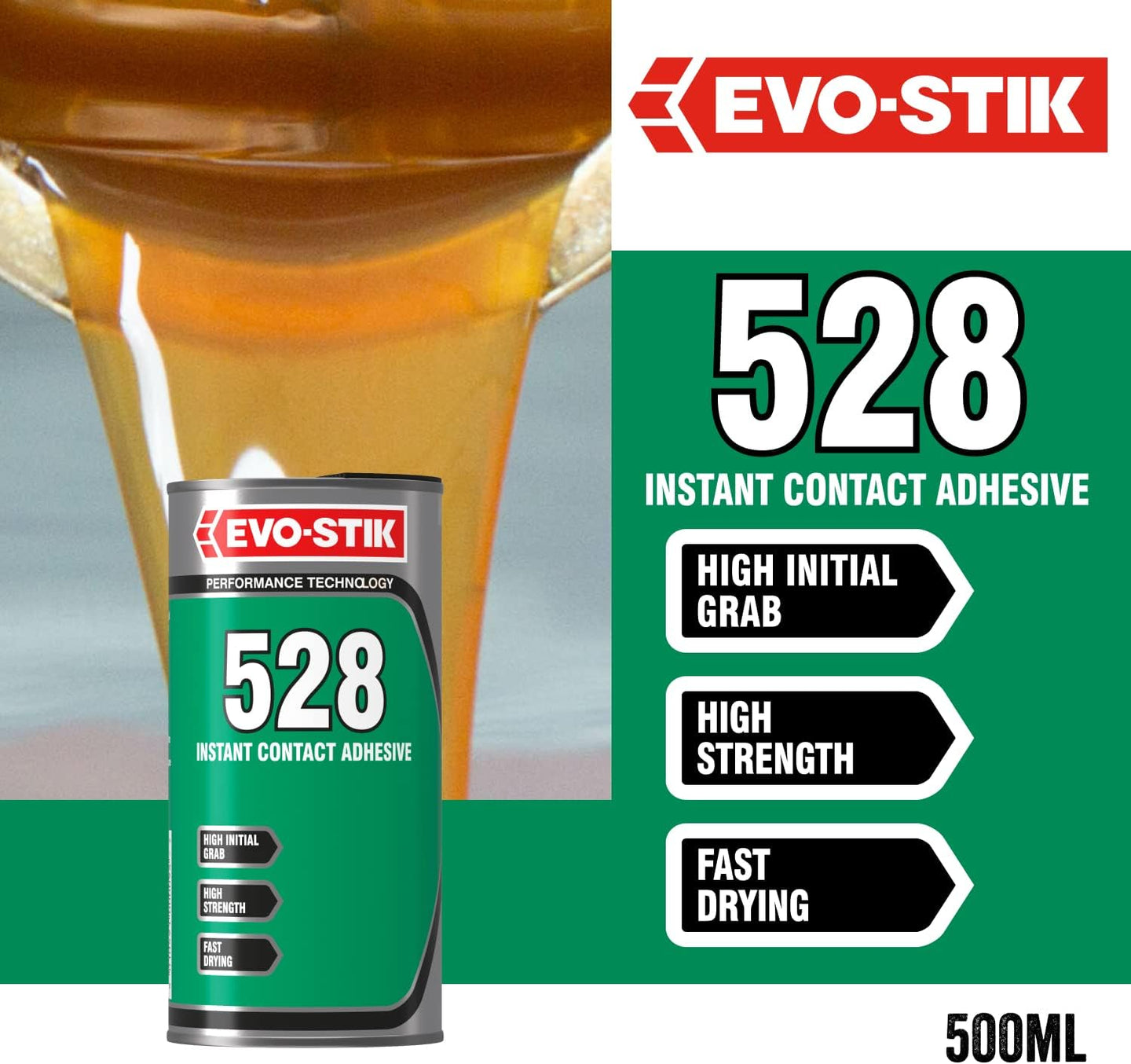 - Contents: 1x EVO-STIK 528 Instant Contact Adhesive, 500ml
