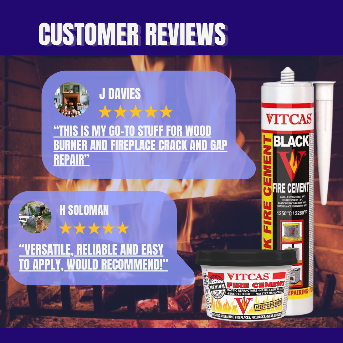 - Vitcas black fire cement is best option for repairing the surface or for patching the broken surface. You can easily repair or patch up your broken boilers, fireplace, oven, and much more.